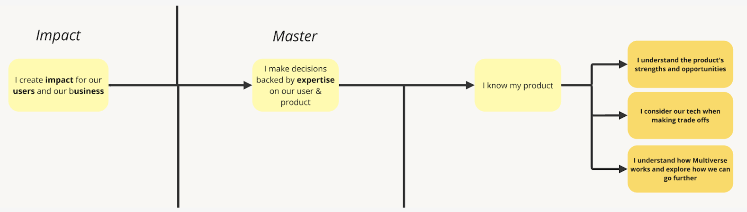Our goal for the framework is that it’s fair, actionable, and measurable. It should create a pathway for great Product Management through clear expectations, speak to every aspect of the product development lifecycle, and help PMs—and Multiverse—grow.