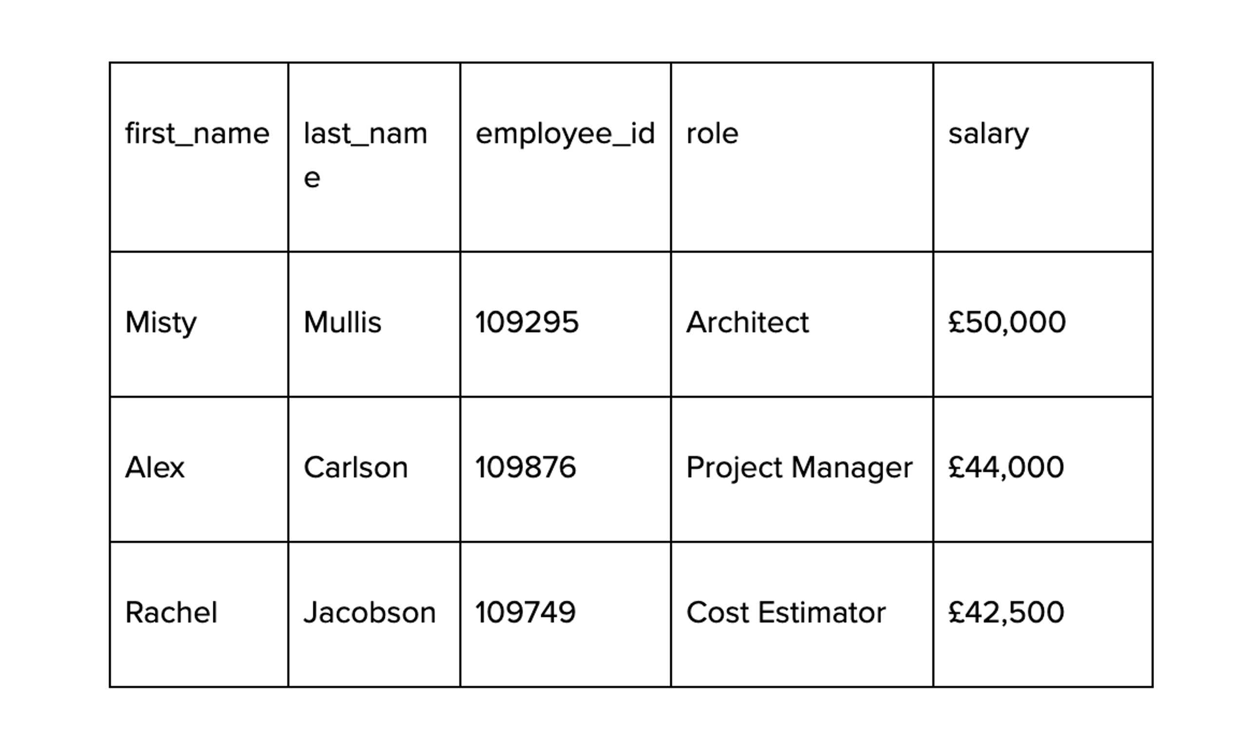 Here’s a visualisation of a simple relational database for employee data: